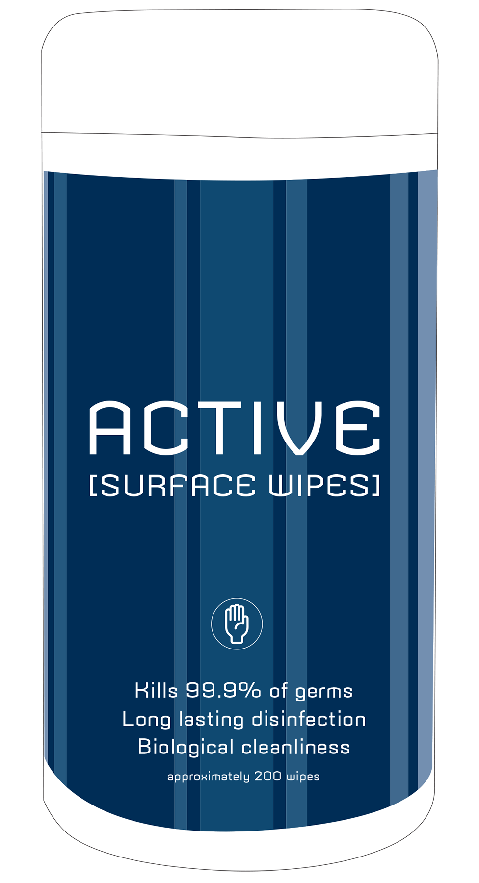 Active Surface Wipes provide protection from 99.9% of germs including MRSA, E. coli and Salmonella delivering broad spectrum pathogen protection and long lasting biological cleanliness to surfaces in seconds.
