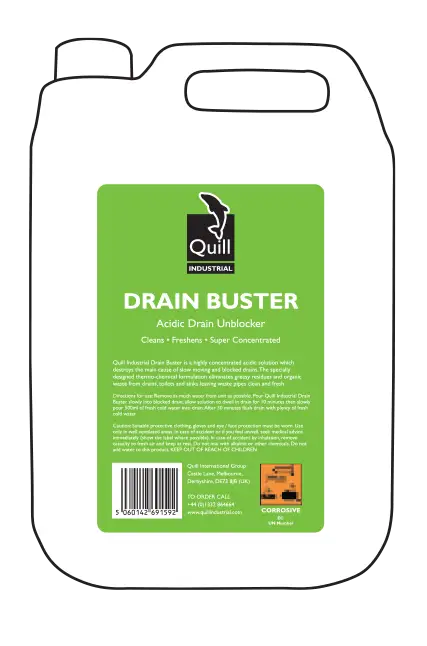 Quill Industrial Drain Buster is a highly concentrated acidic solution which destroys the main cause of slow moving and blocked drains.