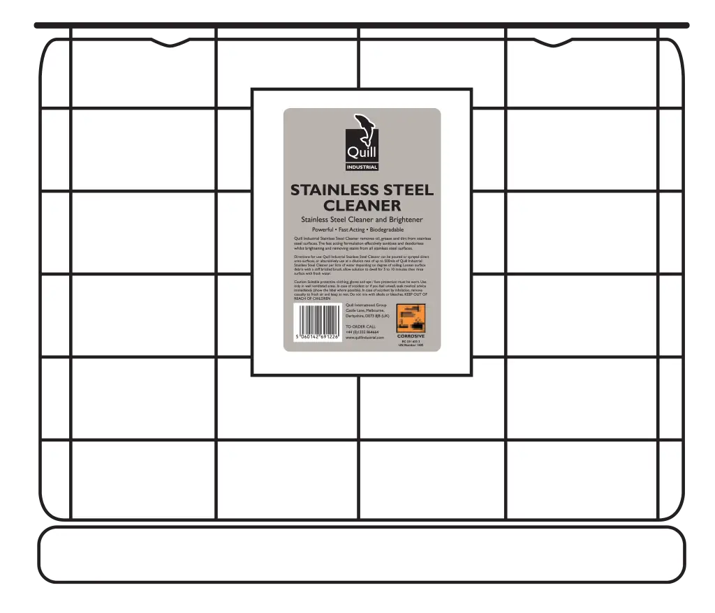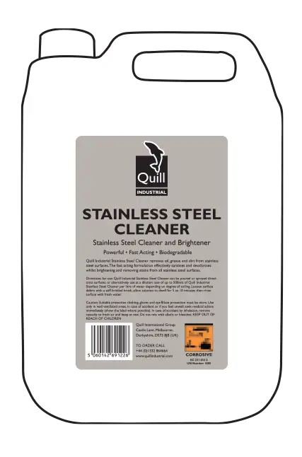 Quill Industrial Stainless Steel Cleaner removes oil, grease and dirt from stainless steel surfaces. The fast acting formulation effectively sanitises and deodorises whilst brightening and removing stains from all stainless steel surfaces.