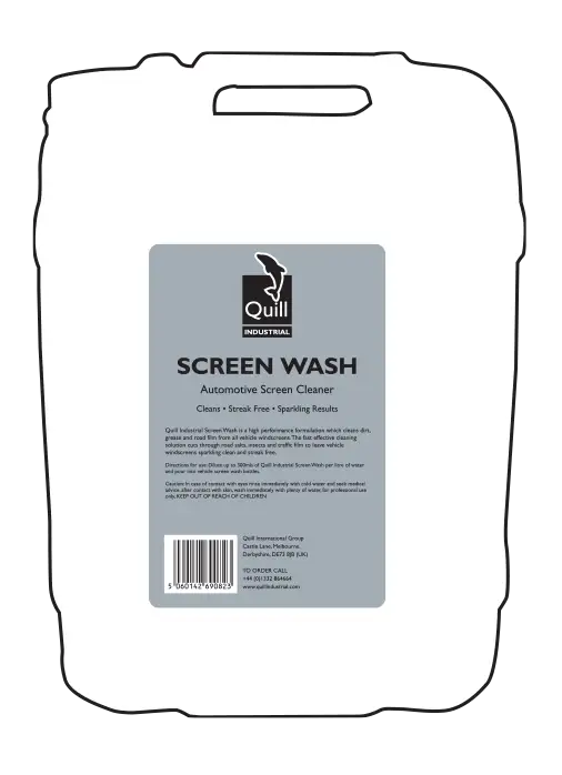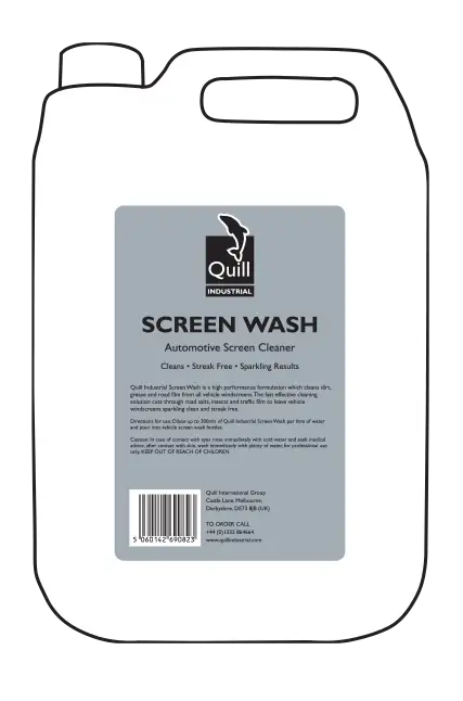 Quill Industrial Screen Wash is a high performance formulation which cleans dirt, grease and road film from all vehicle windscreens. The fast effective cleaning solution cuts through road salts, insects and traffic film to leave vehicle windscreens sparkling clean and streak free.